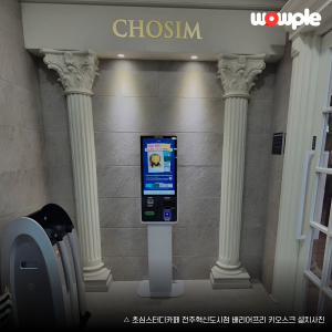 와우플 솔루션에 최적화된 코보시스 자체 양산 27" 키오스크 CBK-1000 입니다. 공간대여업종 키오스크 (영업상담 전화 : 02-403-6990)
